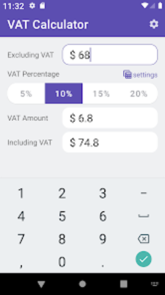 Além disso, o aplicativo permite que você escolha a taxa de imposto e a moeda (você pode escolher entre dólares, euros, libras e outras moedas).